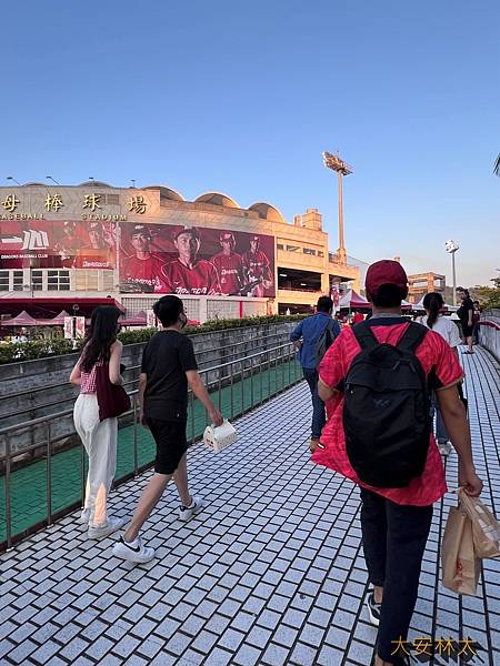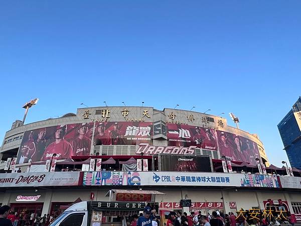 先前幾次不愉快的停車經驗,我們這次選擇搭乘捷運到芝山站再散步過去天母棒球場!沿途還可以把想吃的東西都準備好,舒服的在球場野餐🧺一出芝山站,到處可見味全龍的廣告,球團還貼心的安排免費接駁車!離比賽還有三個小時卻已排了長長的人龍再等接駁車,可見又是一場滿場的比賽!