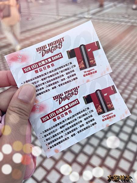 驗票進場後,得到兩張贈品兌換券!哇🎊是猛哥的應援法批耶!真不錯👍